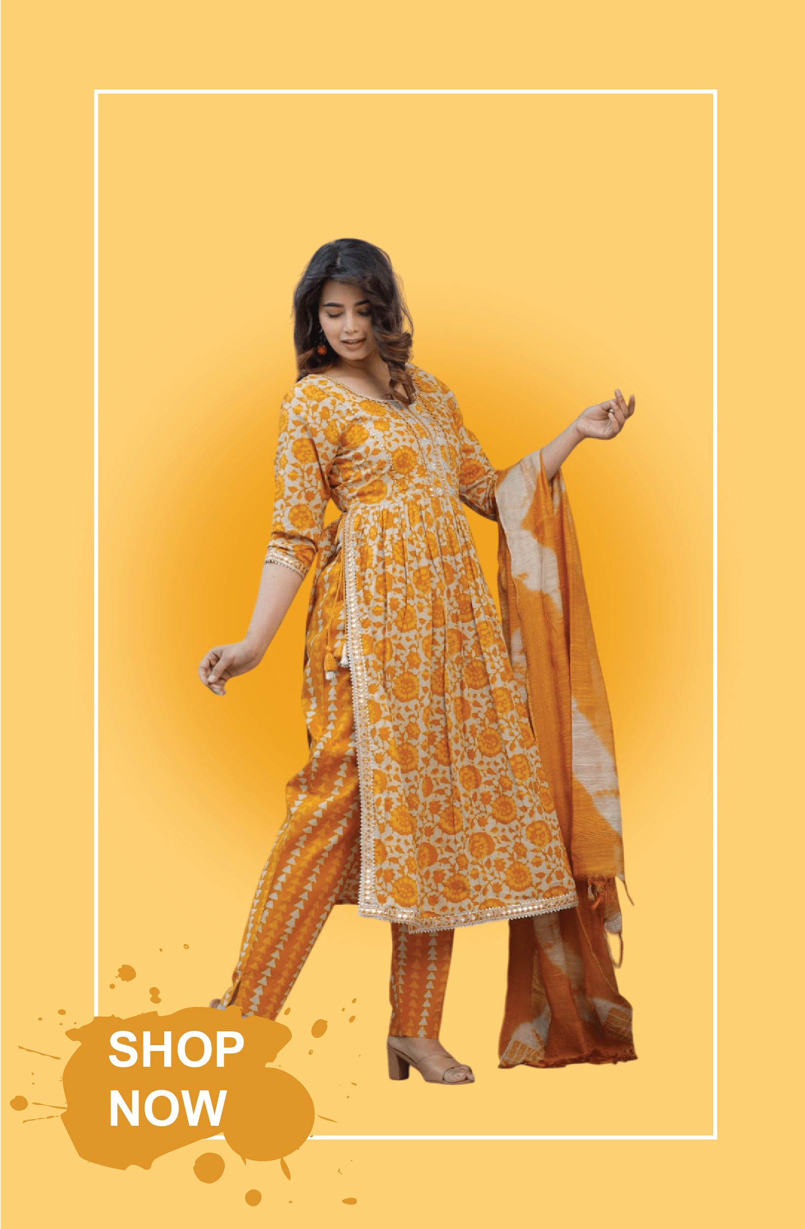 Women Lemon Color Pure Cotton Fabric Kurta Pant