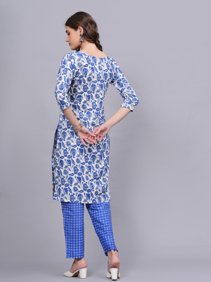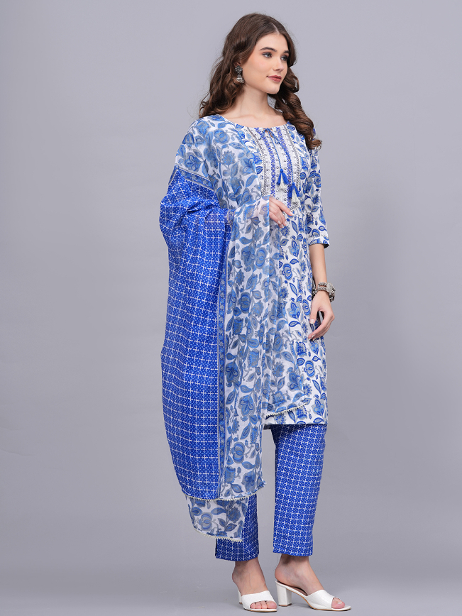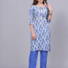 Women Pure Cotton Blue Color Kurta Pant Dupatta Set