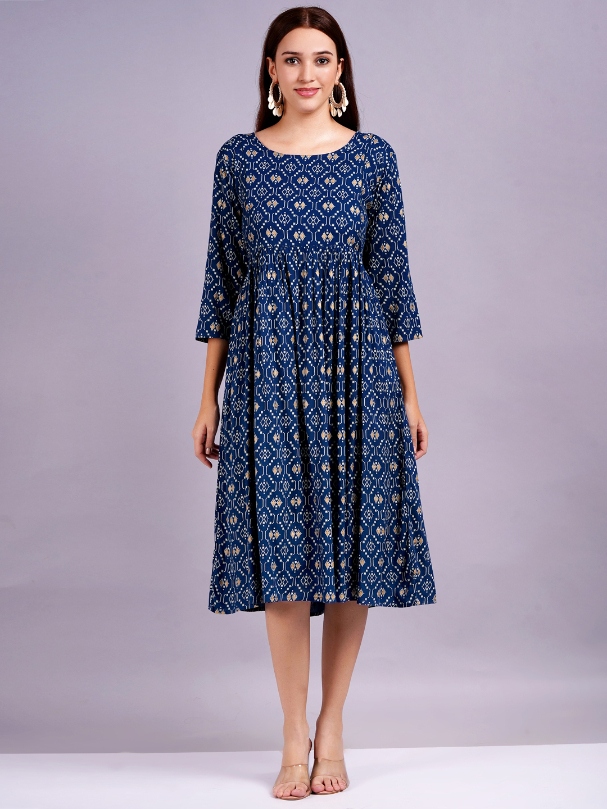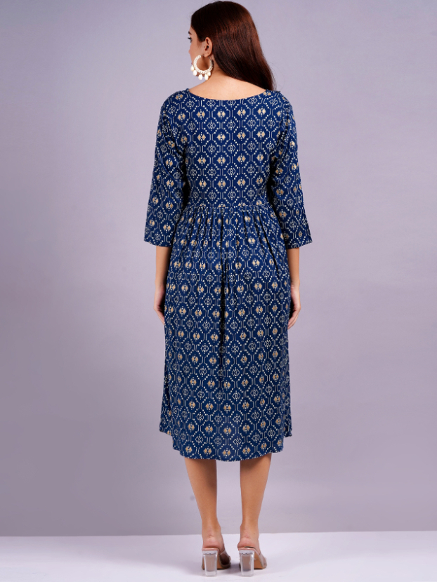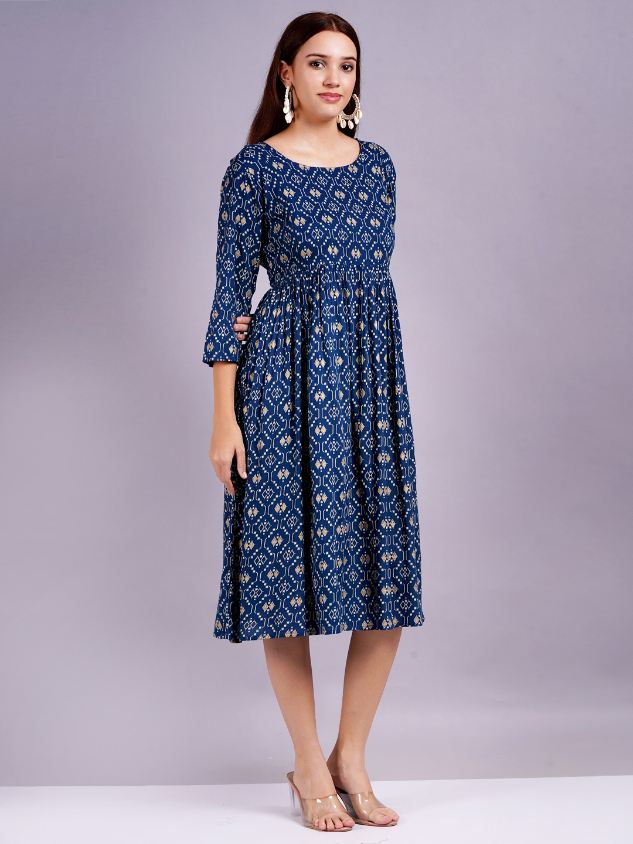 Women Gathered Dark Blue Dress