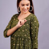 Embrace Comfort: Crafted from 140KG Rayon Fabric, this Mehandigreen maternity dress offers a breathable and soft fabric that keeps you cool and comfortable all day long, making it perfect for any occasion. Conceal Baby Bump: The feeding kurti features a unique design around the tummy area.