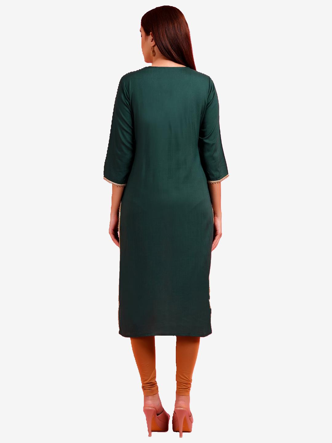 Women Green Color Rayon Straight Kurta