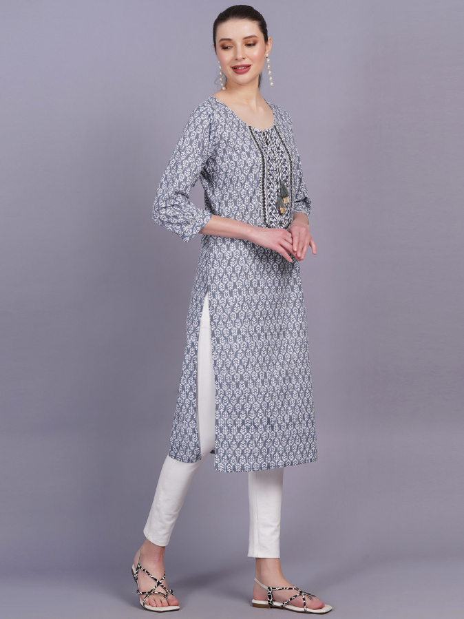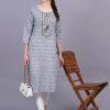 Women Grey Color Cotton Straight Kurta