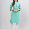 Radiate charm in this women’s Ramagreen color straight-fit kurta. Crafted from comfortable cotton fabric, it blends style and tradition seamlessly. The unique shade adds a touch of sophistication, making it a perfect choice for various occasions. Elevate your ethnic wardrobe with this graceful and trendy piece.