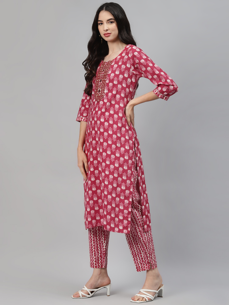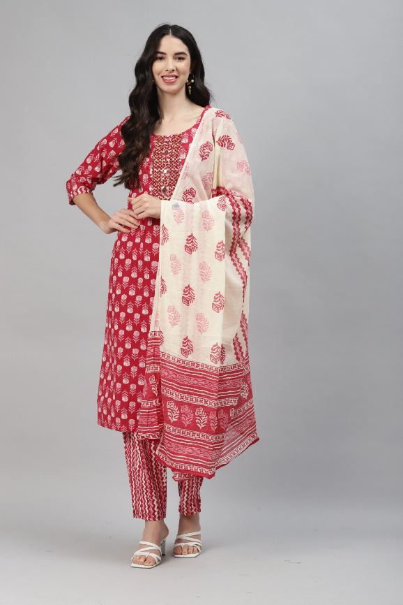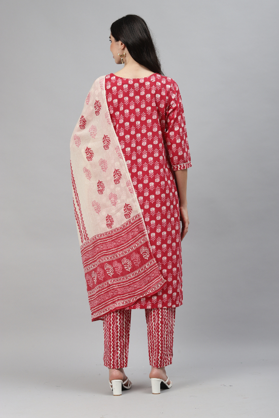Women Light Pink Color Pure Cotton Fabric Kurta PantDupatta