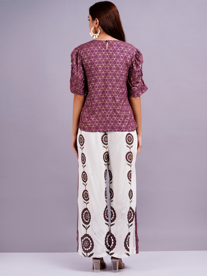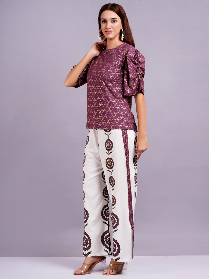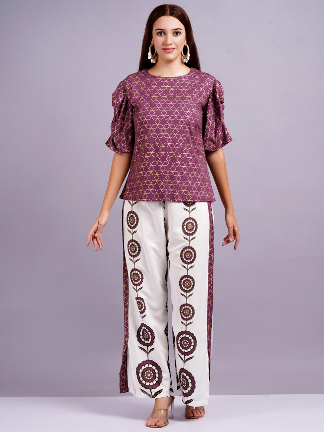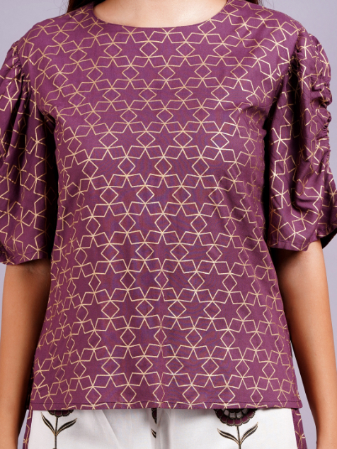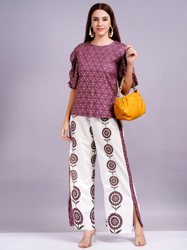 Geometric Print and lace detailing, perfect for casual outings. The top have hip length and bottom is covering full length